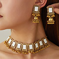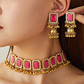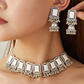 ->> 1套复古中东名族风几何方型铃铛坠气质女士项链耳坠组合套装